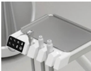 5 Bandeja do assistente com múltiplas articulações, equipada com cânula de aspiração cirúrgica 16 mm e cânula de aspiração de saliva 11mm.