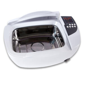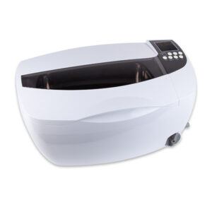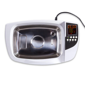 Banho de ultrassons de 3 litros. O tamanho do seu recipiente em aço inoxidável torna-o muito adequado para a limpeza de pequenos objetos em laboratório e numa clínica dentária.